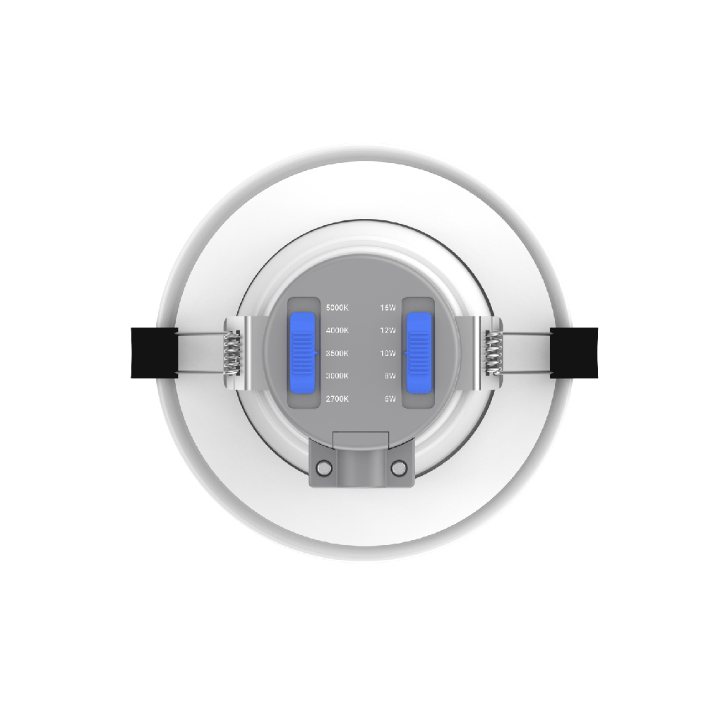 The DL254-4-16W-M-A5C5 is a 4″ round LED downlight that provides 570 up to 1,670 lumens of 5CCT-tunable white light color temperatures and the following features:
