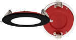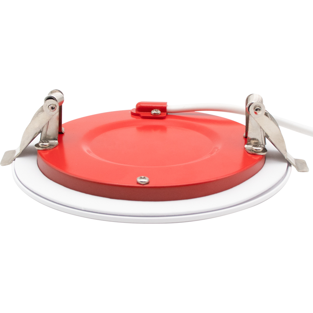 The FR-LED-4-S12W-5CCT-PL-WH is a 12 watt, 4″ round Fire Rated Ultra Slim dimmable LED downlight in a white or black finish with the following features: