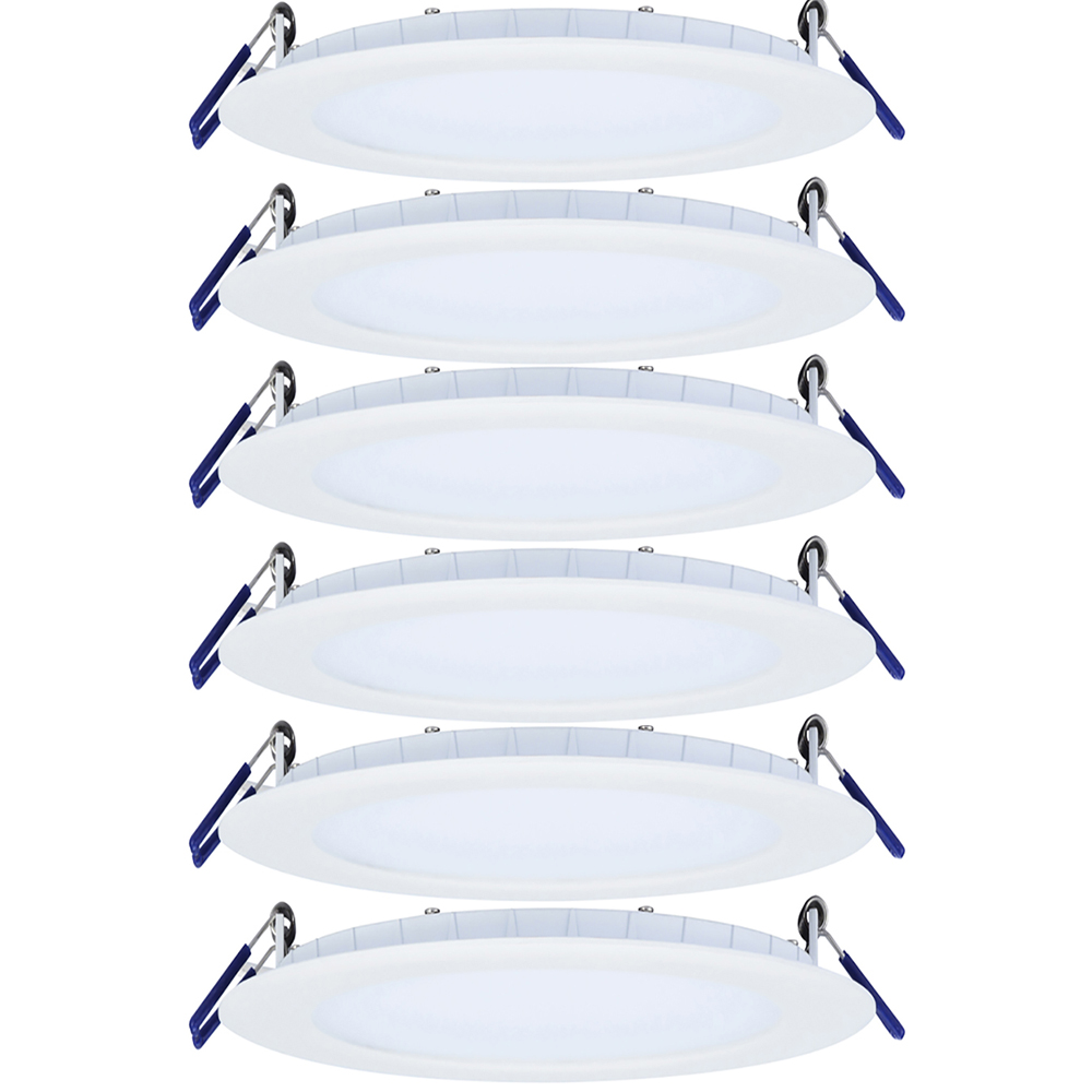 The LE6R-5CCT-6P, 6 PACK 6″ Round dimmable LED downlight in a white finish with the following features: