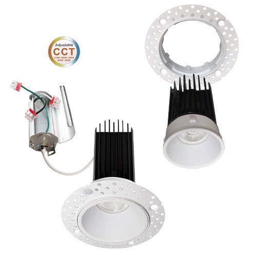 The LED-2-S15W-L5CCT & LED-2-S15W-3018K Round or Square 15 watt 24° LED Trimless downlight, 5CCT-tunable or DTW with the following features.
