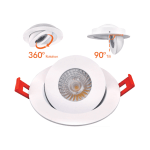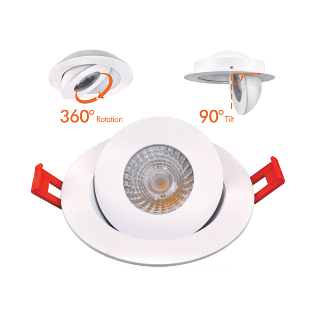 The LED-3-S7W-FG model is a 3″ round 7 watt LED floating gimbal downlight in a white and black finish with the following features: