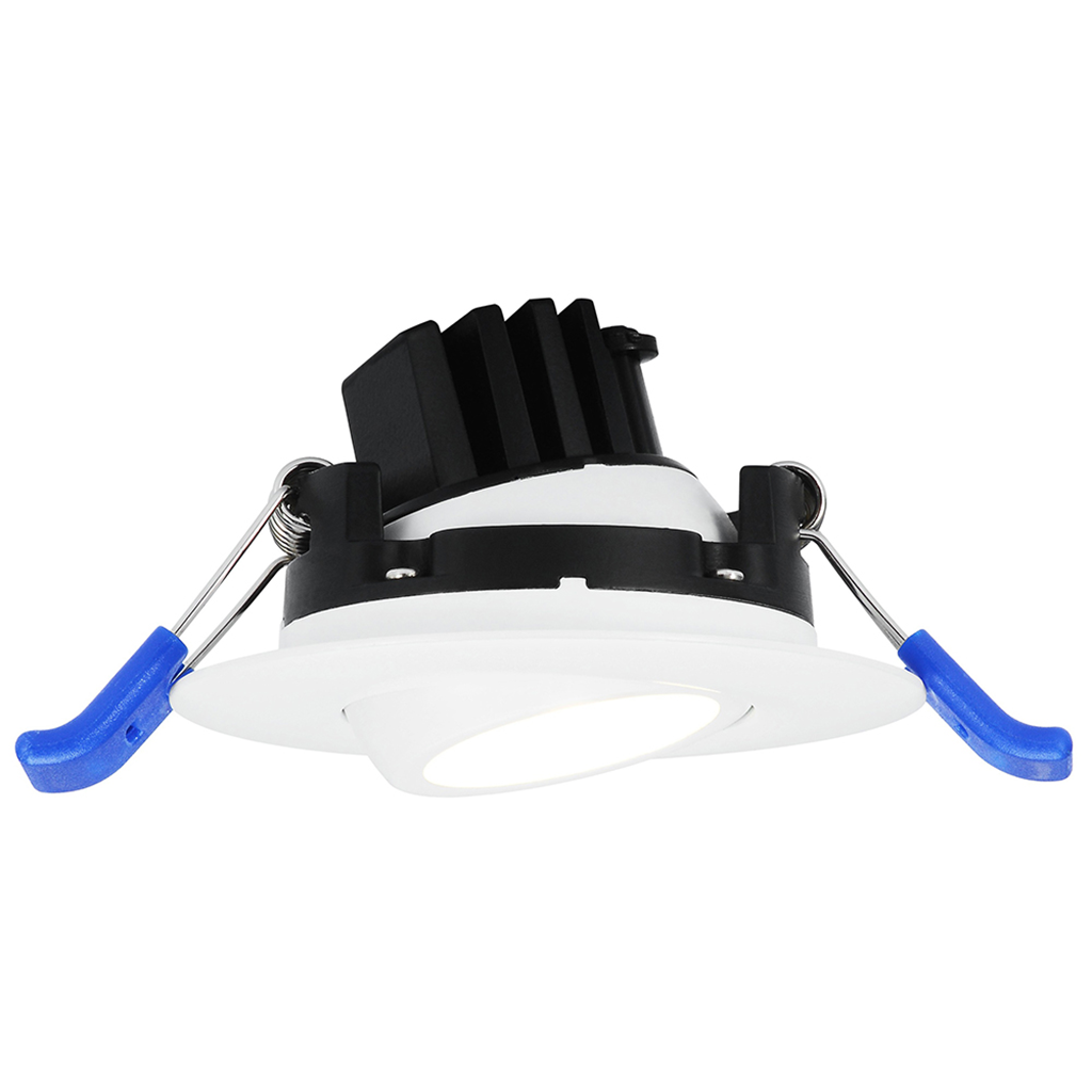 The Lotus LED Lights High Output 2″ round LED gimbal downlights are designed to go where no other fixture can. Being IC-rated, they can be installed directly into an insulated ceiling without requiring a recessed housing and, being only 1.5″ deep, can be installed where ceiling space is limited. Installation is simple – just cut a hole and the attached spring clips snap the fixture into place. These gimbal downlights emit a 24º beam of light that is adjustable in a 10º tilt in each direction and 360º rotation. A high CRI of 90+ means you’ll enjoy true color rendering in the area of illumination. Ideal applications include sloped ceilings, highlighting artwork, cabinets and recessed alcoves.