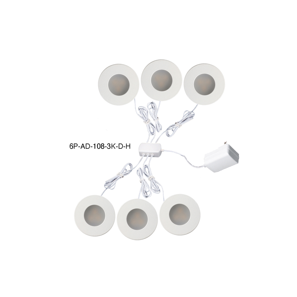 6 pack with connectors, 6 port hub and non-dimmable plug-in driver 3K white cat# 6P-AD-108-3K-D-H